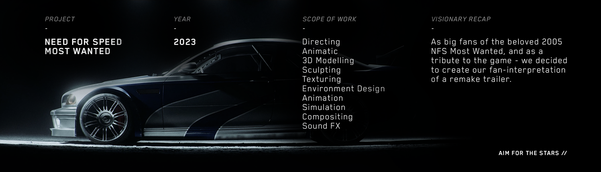 As big fans of the beloved 2005 Need for Speed Most Wanted, and as a tribute to the game - we decided to create our fan-interpretation of a remake trailer.