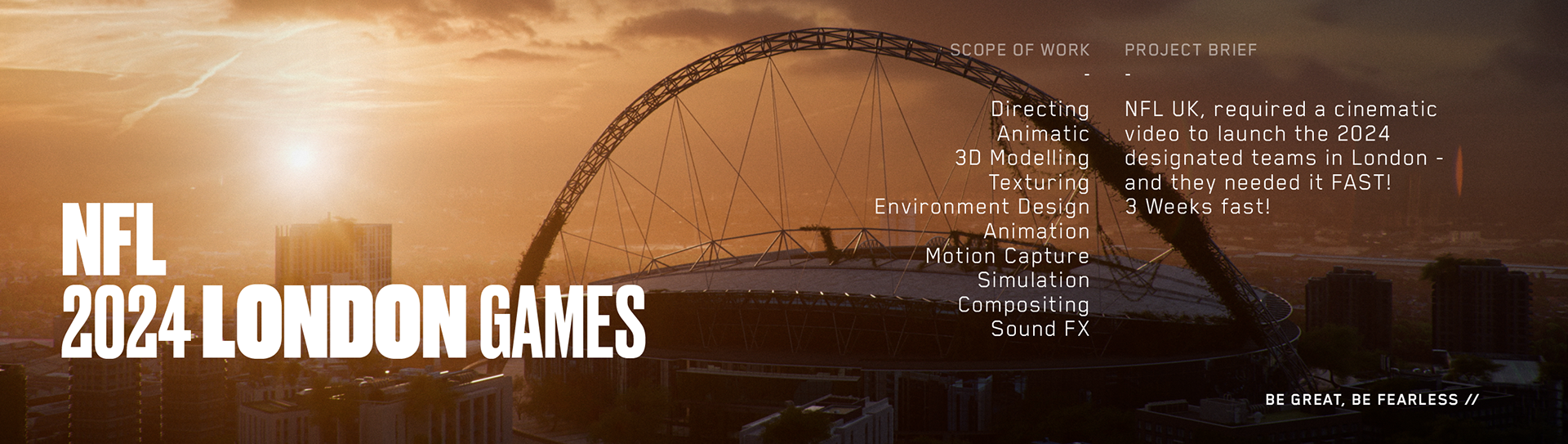 NFL UK, required a cinematic video to launch the 2024 designated teams in London - and we are happy to present it for you!
